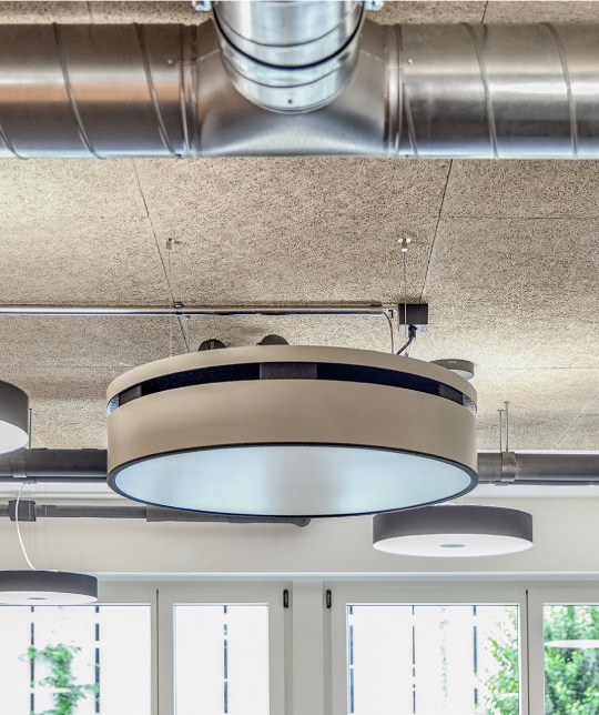 Il KaDius può essere montato sia come apparecchio a soffitto direttamente sotto il soffitto oppure può essere integrato liberamente nel locale. L'involucro esterno può essere personalizzato facilmente.